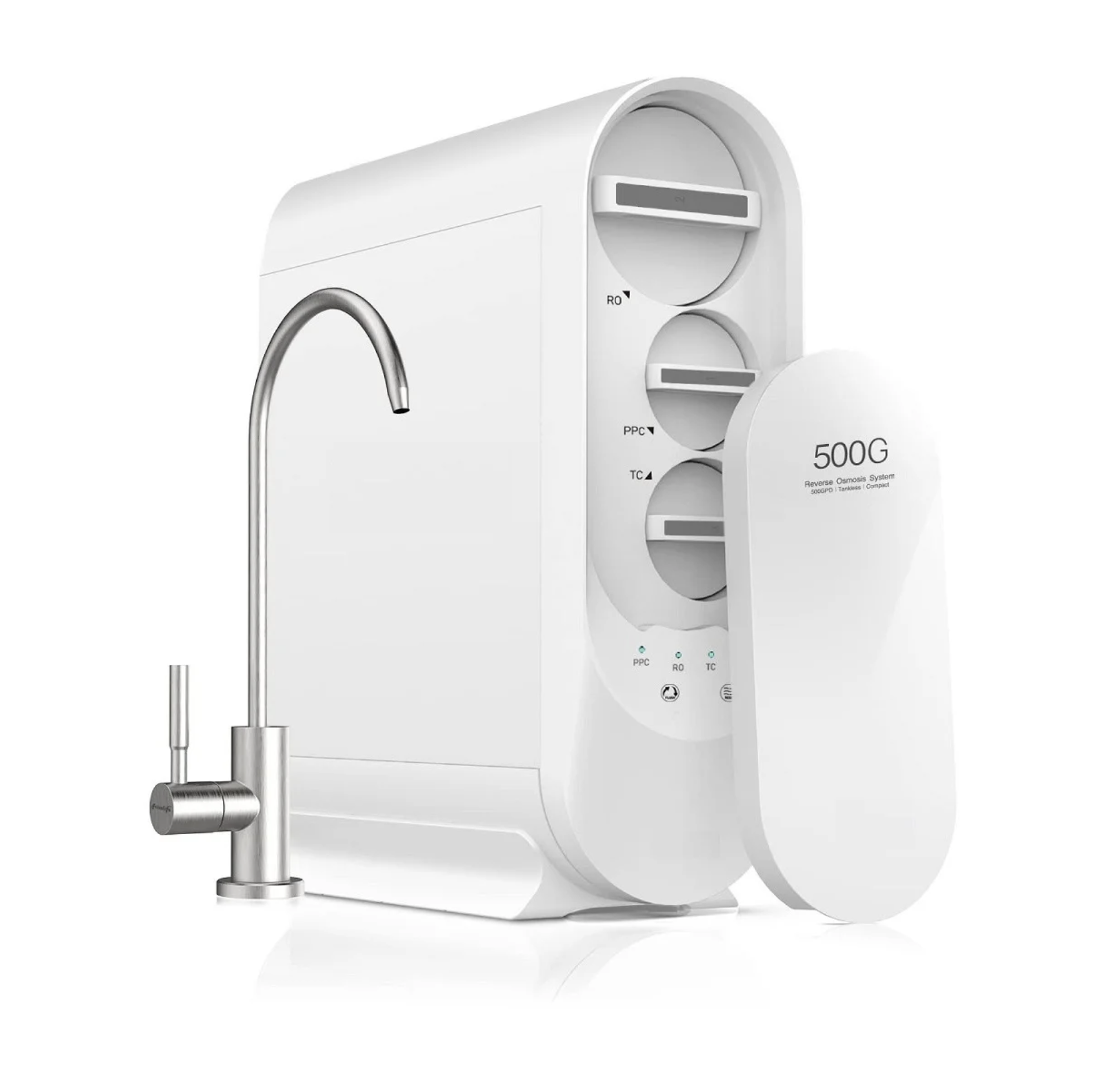 - Postfiltro de doble etapa carbón + remineralizador y membrana de 500 gpd.